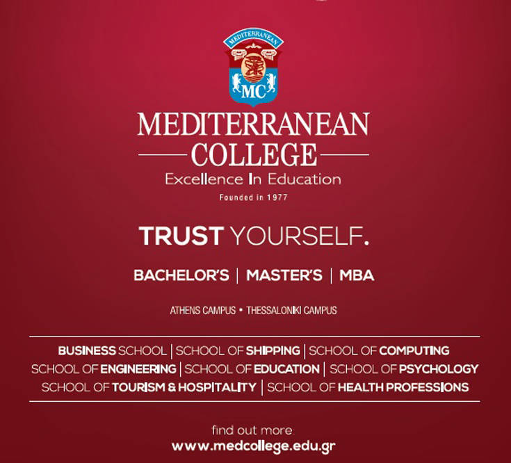 Κλείσε έγκαιρα τη θέση σου και ζήσε την εμπειρία φοίτησης στο 1ο Ιδιωτικό Αγγλόφωνο Κολλέγιο στην Ελλάδα. Επικοινώνησε σήμερα για περισσότερες πληροφορίες στα προγράμματα σπουδών και χρηματοδότησης που προσφέρονται: Mediterranean College Αθήνα: Πατησίων 107 & Πελλήνης 8, ΤΗΛ.: 210 8899600 Θεσσαλονίκη: Εγνατία 2-4, ΤΗΛ.: 2310 287779 / 2310 547708 medcollege.edu.gr, [email protected]