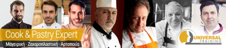 Ένα κορυφαίο και ΤΡΙΠΛΑ πιστοποιημένο εκπαίδευσης που συνδυάζει Μαγειρική, Ζαχαροπλαστική και Αρτοποιία μαζί, από το κορυφαίο UNIVERSAL TRAINING, αναγνωρισμένο Κέντρο δια Βίου Μάθησης από τον ΕΟΠΠΕΠ του Υπουργείου Παιδείας.