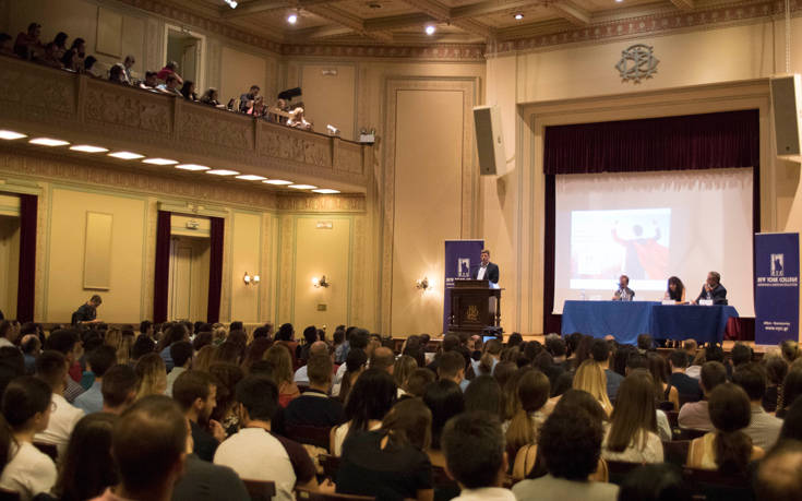 Ο Εκπαιδευτικός Όμιλος New York College, με την επίσημη υποστήριξη του Γραφείου του Ευρωπαϊκού Κοινοβουλίου στην Ελλάδα, του Athens Center for Entrepreneurship and Innovation και των AHEPA (American Hellenic Educational Progressive Association) – CHAPTER ICARUS, πραγματοποίησε διαδραστική ημερίδα με τίτλο: «Ηγεσία, Καινοτομία και Επιχειρηματικότητα: Εμπειρία και προοπτικές στην Ελλάδα του σήμερα», την Τετάρτη, 19 Σεπτεμβρίου στην αίθουσα του Φιλολογικού Συλλόγου «ΠΑΡΝΑΣΣΟΣ».
