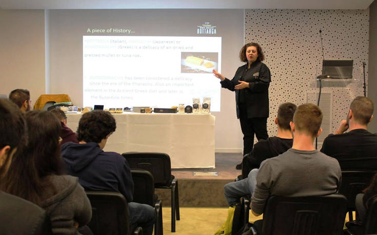 Η σεφ του Αυγοτάραχου Τρικαλινός κα Λίλα Κούρτη αφηγήθηκε την ιστορία της επιχείρησης, ανέλυσε τις ιδιαιτερότητες των προϊόντων, ενημέρωσε για τις συνεχείς μελέτες που γίνονται σε θέματα υγείας, καθώς και για τις αδιάκοπες έρευνες όσον αφορά στην ανάπτυξη νέων προϊόντων. Στη συνέχεια, μύησε τους φοιτητές στα γευστικά μυστικά που κρύβει το παραδοσιακό Αυγοτάραχο Τρικαλινός, το μελίχλωρο, το τρίμμα και η ψυχή (Psyche).