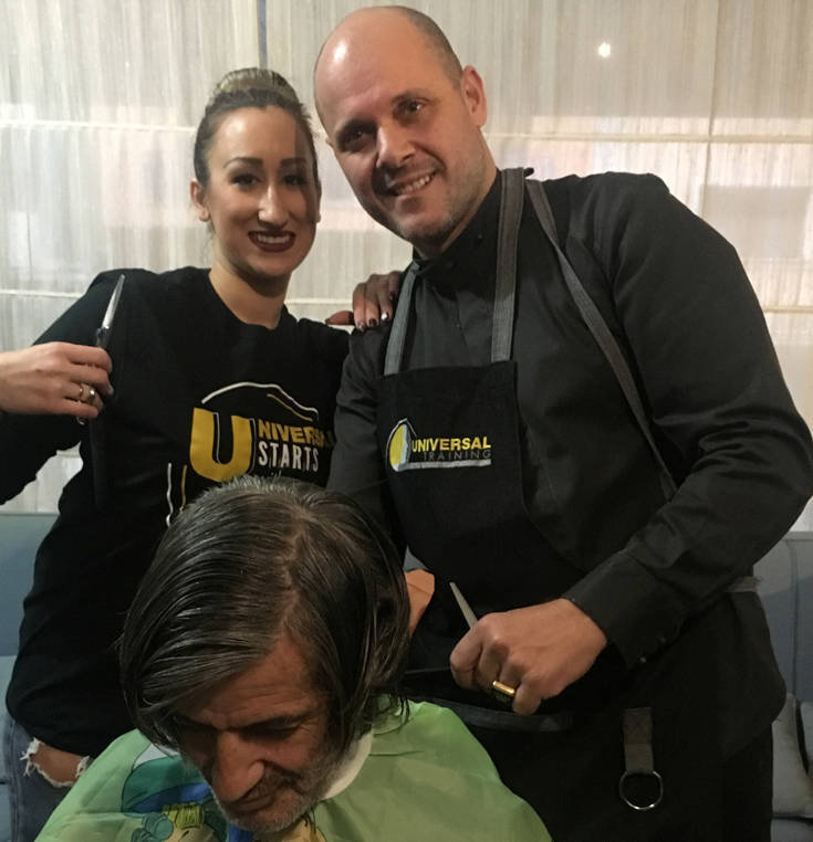 Άνδρες και γυναίκες που ζουν στον Ξενώνα του Δήμου, εμπιστεύτηκαν τα έμπειρα χέρια των καθηγητών του Universal Training, Kωνσταντίνου Μεγαπάνου, Παύλου Κεντρωτά και Δέσποινας Τούμπουρα που με την υποστήριξη των σπουδαστών τους δημιούργησαν ίσως τα πιο όμορφα κεφάλια της χρονιάς.