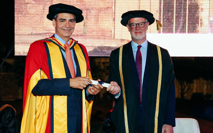 Τιμητικό Διδακτορικό Τίτλο για το επιστημονικό του έργο από το Πανεπιστήμιο του Bolton έλαβε από τον Κόμη του St. Andrews κατά τη διάρκεια της εκδήλωσης, o Καθηγητής Άγγελος Συρίγος.