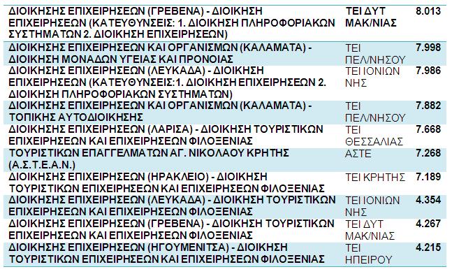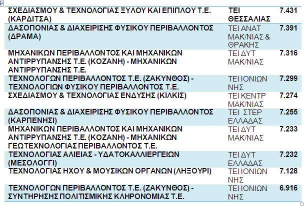 Τα 10 τμήματα με τη χαμηλότερη βάση εισαγωγής