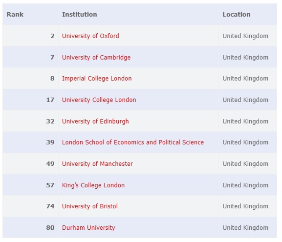Η Μεγάλη Βρετανία φημίζεται για το υψηλό επίπεδο της παρεχόμενης εκπαίδευσης γεγονός που αποδεικνύεται από την υψηλή κατάταξη που έχουν τα πανεπιστήμιά της. Στους πίνακες με τα καλύτερα πανεπιστήμια ανά τον κόσμο των Times Higher Education τρία βρετανικά πανεπιστήμια είναι ανάμεσα στα 10 καλύτερα στον κόσμο, ενώ άλλα 7 είναι ανάμεσα στα 100 κορυφαία…