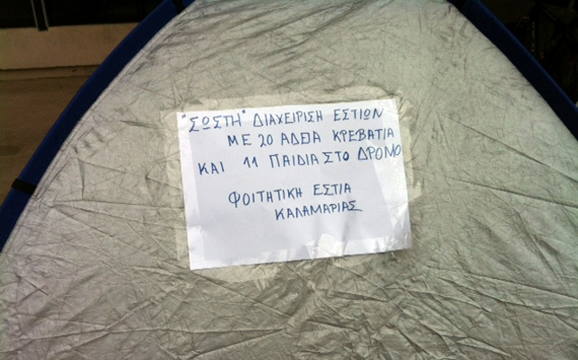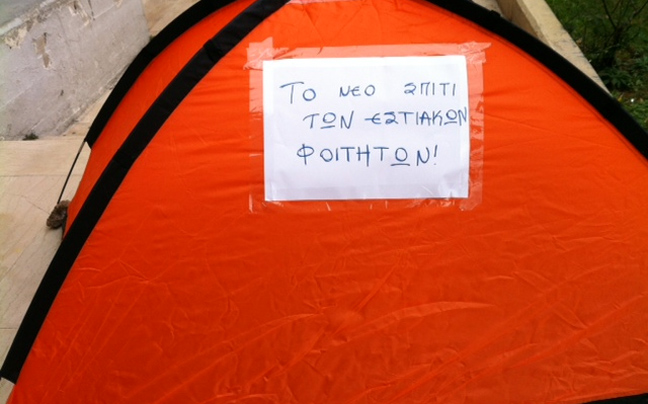 Οι σκηνές στήθηκαν χτες από 11 φοιτητές, ωστόσο η διαμαρτυρία είχε συμβολικό χαρακτήρα και μέχρι το μεσημέρι οι περισσότερες απομακρύνθηκαν. Τελικά ένα αντίσκηνο έμεινε στην είσοδο του πανεπιστημίου.