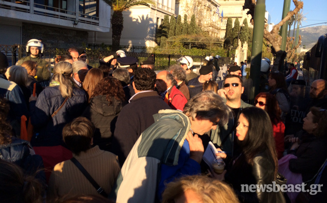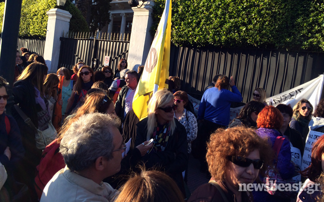 Με τους διαμαρτυρόμενους έξω από το υπουργείο Διοικητικής Μεταρρύθμισης έχουν ενωθεί και εκπαιδευτικοί που στις 15.00 είχαν συγκέντρωση έξω από το υπουργείο Παιδείας στο Μαρούσι.