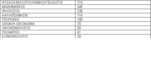 Πρωταθλητές των λειτουργικών κενών, σύμφωνα με στοιχεία του αιρετού του Κεντρικού Υπηρεσιακού Συμβουλίου Δημοτικής Εκπαίδευσης Νεκτάριου Κορδή για τις αποσπάσεις, αναδεικνύονται οι ειδικότητες ΠΕ04, δηλαδή, φυσικοί, χημικοί, βιολόγοι, γεωλόγοι. Τα κενά μετά τις αποσπάσεις είναι 774. Ακολουθούν οι μαθηματικοί με 245 κενά και στην 3η θέση οι φιλόλογοι με 230 κενά.