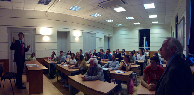 Τον κ. Πρέσβη υποδέχτηκαν ο αντιπρόεδρος του NYC κ. Ν. Κατσαρός και ο υπεύθυνος του σεμιναρίου, καθηγητής και διευθυντής των Διπλωματικών και Διεθνών Σπουδών του NYC, κ. Π. Καραφωτιάς ο οποίος παρουσίασε τον κ. πρέσβη στους πολυεθνικούς και πολυπληθείς φοιτητές, που ενθουσιάστηκαν από την ομιλία του και το ντοκιμαντέρ.