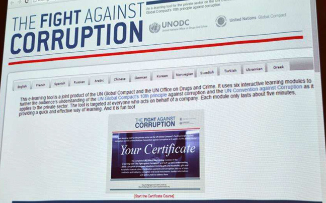 Με το πέρας της εκδήλωσης απονεμήθηκαν σε φοιτητές και καθηγητές του New York College τα πιστοποιητικά επιτυχούς παρακολούθησης του προγράμματος «The Fight Against Corruption: E-Learning Tool» του United Nations Global Compact.