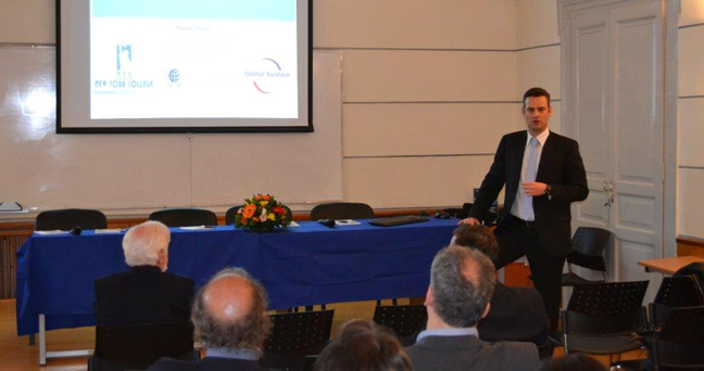 Η διάλεξη έγινε στο κεντρικό κτίριο του New York College το οποίο είναι μέλος της μεγάλης οικογένειας του Οικουμενικού Συμφώνου του Οργανισμού Ηνωμένων Εθνών (UN Global Compact) και η δράση εταιρικής κοινωνικής ευθύνης πραγματοποιήθηκε στα πλαίσια των ενεργειών διάδοσης των Αρχών του Οικουμενικού Συμφώνου του ΟΗΕ στη Κοινωνία (Communication On Progress).