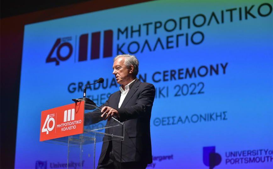 Επιπλέον, χαιρετισμό απηύθυνε, μαγνητοσκοπημένα, και ο κ. Μαργαρίτης Σχοινάς, Αντιπρόεδρος της Ευρωπαϊκής Επιτροπής για την Προώθηση του Ευρωπαϊκού Τρόπου Ζωής, ο οποίος ανέδειξε το σημαντικό έργο που γίνεται στο Μητροπολιτικό Κολλέγιο και προέτρεψε τους απόφοιτους να μη σταματήσουν να εξελίσσονται ποτέ.