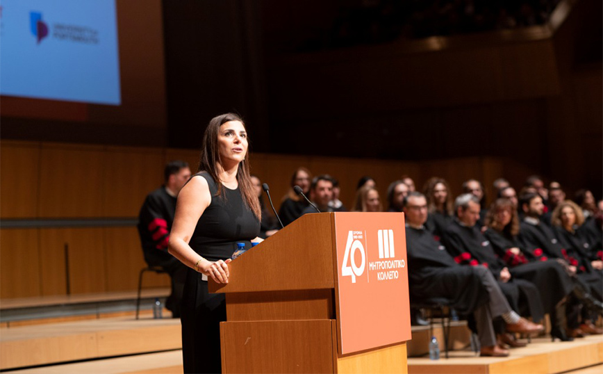 Προσκεκλημένοι ομιλητές στις Τελετές Αποφοίτησης που έλαβαν χώρα στην κατάμεστη αίθουσα «Χρήστος Λαμπράκης» στο Μέγαρο Μουσικής Αθηνών ήταν η κα. Πέγκυ Αντωνάκου, Γενική Διευθύντρια της Google Νοτιοανατολικής Ευρώπης, ο κ. Βασίλης Αποστολόπουλος, Διευθύνων Σύμβουλος του Ομίλου Ιατρικού Αθηνών, η κα. Μαρίνα Οικονόμου, Ομότιμη Καθηγήτρια Ψυχιατρικής στην Ιατρική Σχολή του Εθνικού Καποδιστριακού Πανεπιστημίου Αθηνών και Επιστημονική Σύμβουλος & Visiting Professor στο Μητροπολιτικό Κολλέγιο, και ο κ. Οδυσσέας Ντότσικας, Ιδρυτής και Διευθύνων Σύμβουλος του Ομίλου Think Digital.