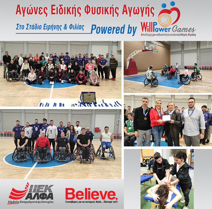 Με στόχο την υποστήριξη δράσεων με κοινωνικό αποτύπωμα, την προαγωγή του Εθελοντισμού, αλλά και την ανάδειξη της σημασίας του Αθλητισμού στα ΑμεΑ, οι Τομείς Προπονητικής & Φυσικοθεραπείας του ΙΕΚ ΑΛΦΑ διοργάνωσαν με μεγάλη επιτυχία «Αγώνες Ειδικής Φυσικής Αγωγής (ΑμεΑ)», στο Στάδιο Ειρήνης & Φιλίας (Σ.Ε.Φ), στο πλαίσιο του αθλητικού θεσμού του κορυφαίου ΙΕΚ της χώρας, «WillPower Games».