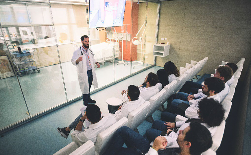 Πιο αναλυτικά, η Ιατρική Σχολή του EUC προσφέρει ένα ολοκληρωμένο και πρωτοπόρο πρόγραμμα σπουδών, χρησιμοποιώντας ένα ευρύ φάσμα μεθοδολογιών στη διδασκαλία και την εκμάθηση. Αυτές περιλαμβάνουν διαλέξεις, πρακτική άσκηση, διαδραστική διδασκαλία, σεμινάρια κλινικών δεξιοτήτων, εικονική μάθηση και κλινική εκπαίδευση από το πρώτο έτος σπουδών με ασθενείς σε δημόσια και ιδιωτικά νοσοκομεία της Κύπρου. Έτσι, κάνει πράξη την εφαρμογή των θεωριών και συμβάλλει στην περαιτέρω ανάπτυξη των επαγγελματικών προσόντων των φοιτητών, αλλά και των κλινικών, επικοινωνιακών τους δεξιοτήτων.