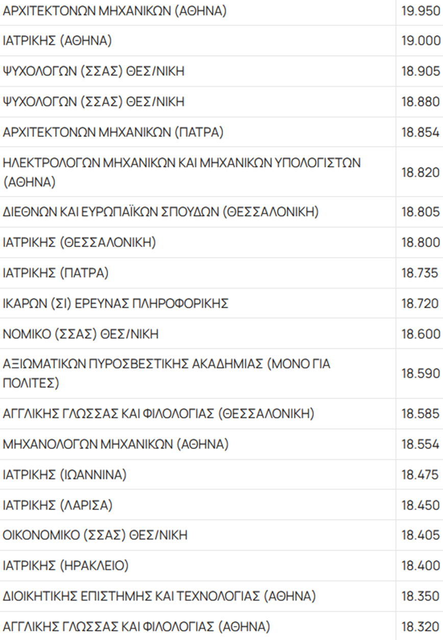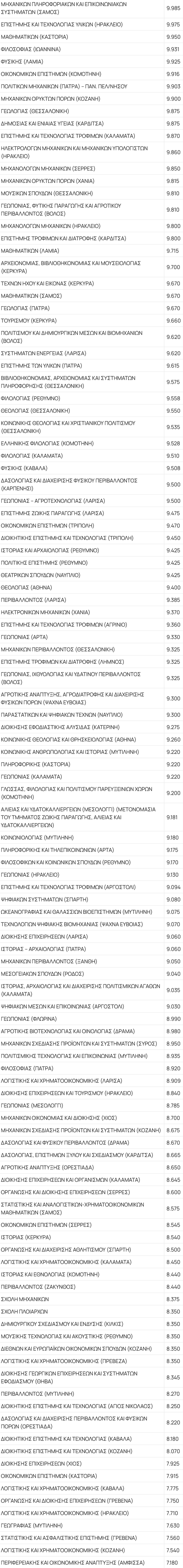 Δείτε αναλυτικά τις σχολές που δεν συγκεντρώνουν πάνω από 10.000 μόρια εδώ: