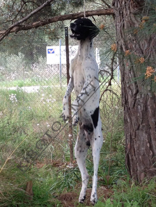 Δέκα μέτρα από το δρόμο σε ένα πεύκο, όπως αναφέρει το lesvosnews.gr, ήταν κρεμασμένο ένα νεαρό ημίαιμο πόιντερ. Η εικόνα που αντίκρυσαν όλοι ήταν αποκρουστική! Κάποιο νοσηρό μυαλό είχε προχωρήσει σε μία ακόμα αποτρόπαια πράξη εις βάρος ενός ανυπεράσπιστου ζώου.