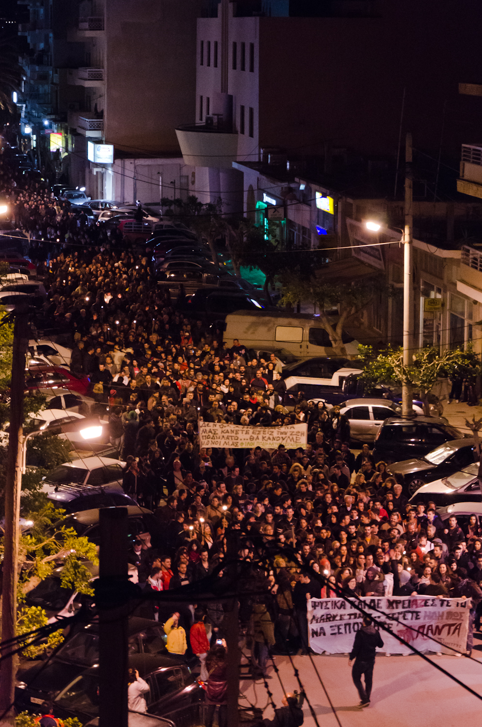 Πάνω από 7.000 κόσμου υπολογίζεται ότι ήταν οι πολίτες που κατέκλεισαν το βράδυ της Παρασκευής την πλατεία Δημαρχείου στην Ιεράπετρα, διαμαρτυρόμενοι για το σχέδιο «Αθηνά».