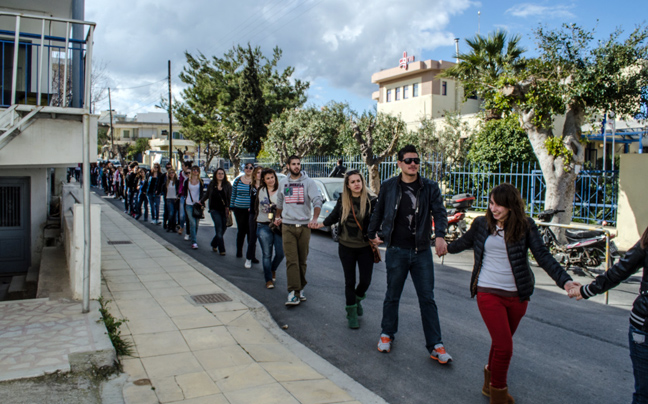 Με πρωτοβουλία των φοιτητών του τμήματος Εμπορίας και Διαφήμισης, που βάζει λουκέτο και απορροφάται από άλλο τμήμα στο Ηράκλειο, άνθρωποι κάθε ηλικίας δημιούργησαν δημιουργήσουν μία ανθρώπινη αλυσίδα από το τμήμα του ΤΕΙ μέχρι το νοσοκομείο της πόλης.