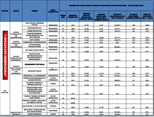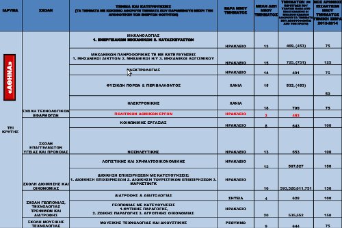 Το τμήμα Χρηματοοικονομικής του Αγίου Νικολάου συγχωνεύεται με το τμήμα Λογιστικής του Ηρακλείου. Παράλληλα, το τμήμα διοίκησης επιχειρήσεων συγχωνεύεται με το τμήμα διοίκησης τουριστικών επιχειρήσεων. Επίσης η σχολή Γεωπονίας παραμένει τελικά στο Ηράκλειο ενώ προβλέπεται η συγχώνευση των τμημάτων της σε ένα. Τέλος το τμήμα Δομικών Έργων παραμένει μέχρι την αποφοίτηση των σπουδαστών του.