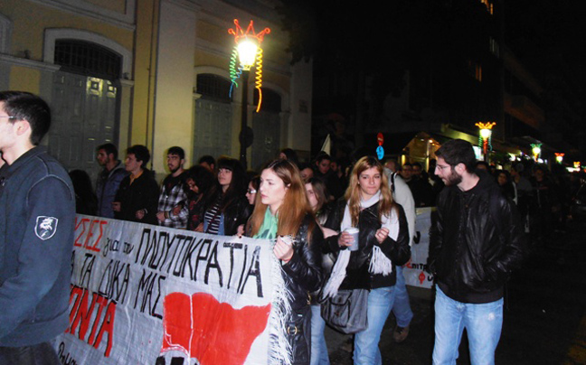 Συγκέντρωση, πορεία και συμβολική κατάληψη στον σταθμό του ΟΣΕ στην Όθωνος-Αμαλίας πραγματοποίησαν οι φοιτητές του ΤΕΙ της Πάτρας.