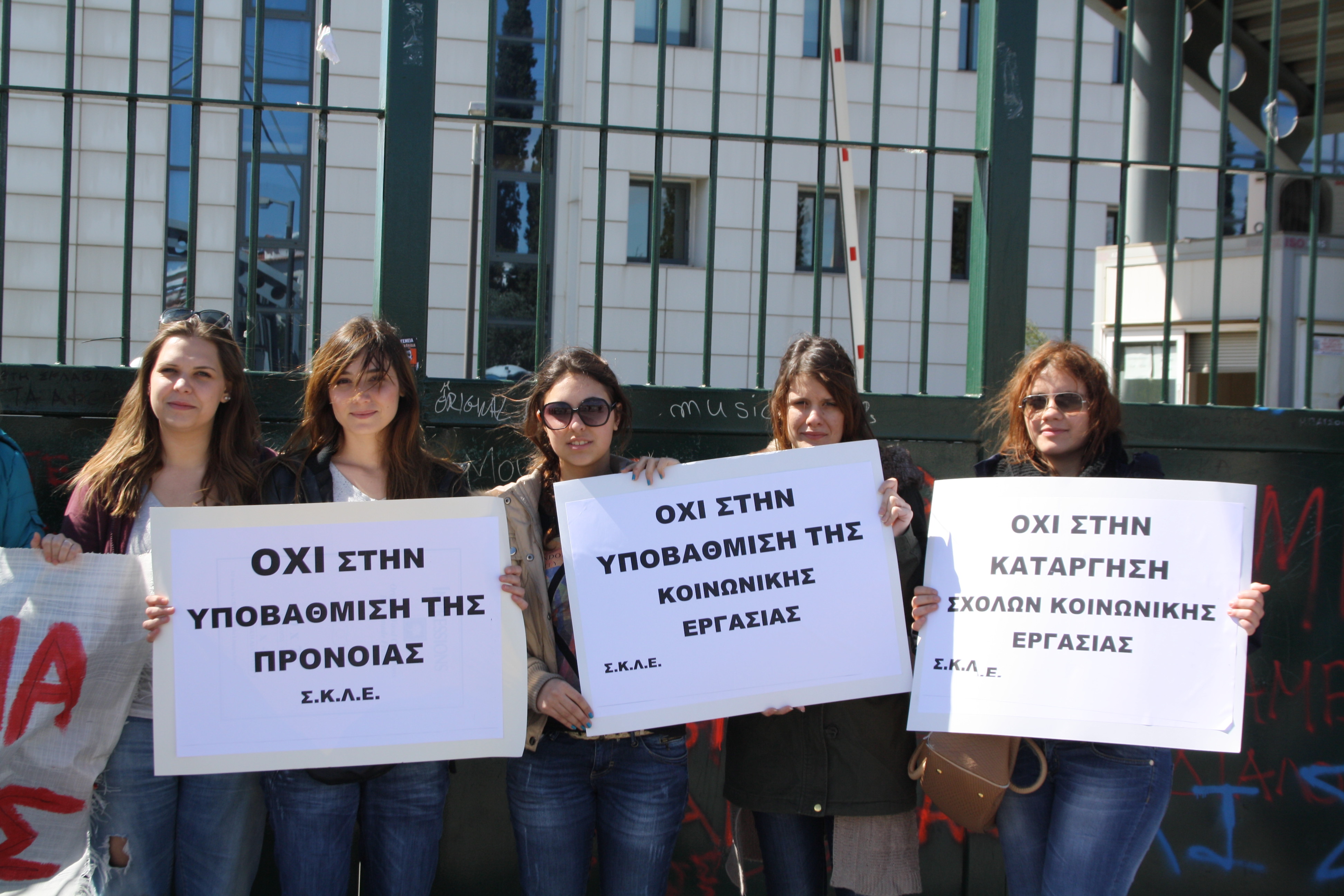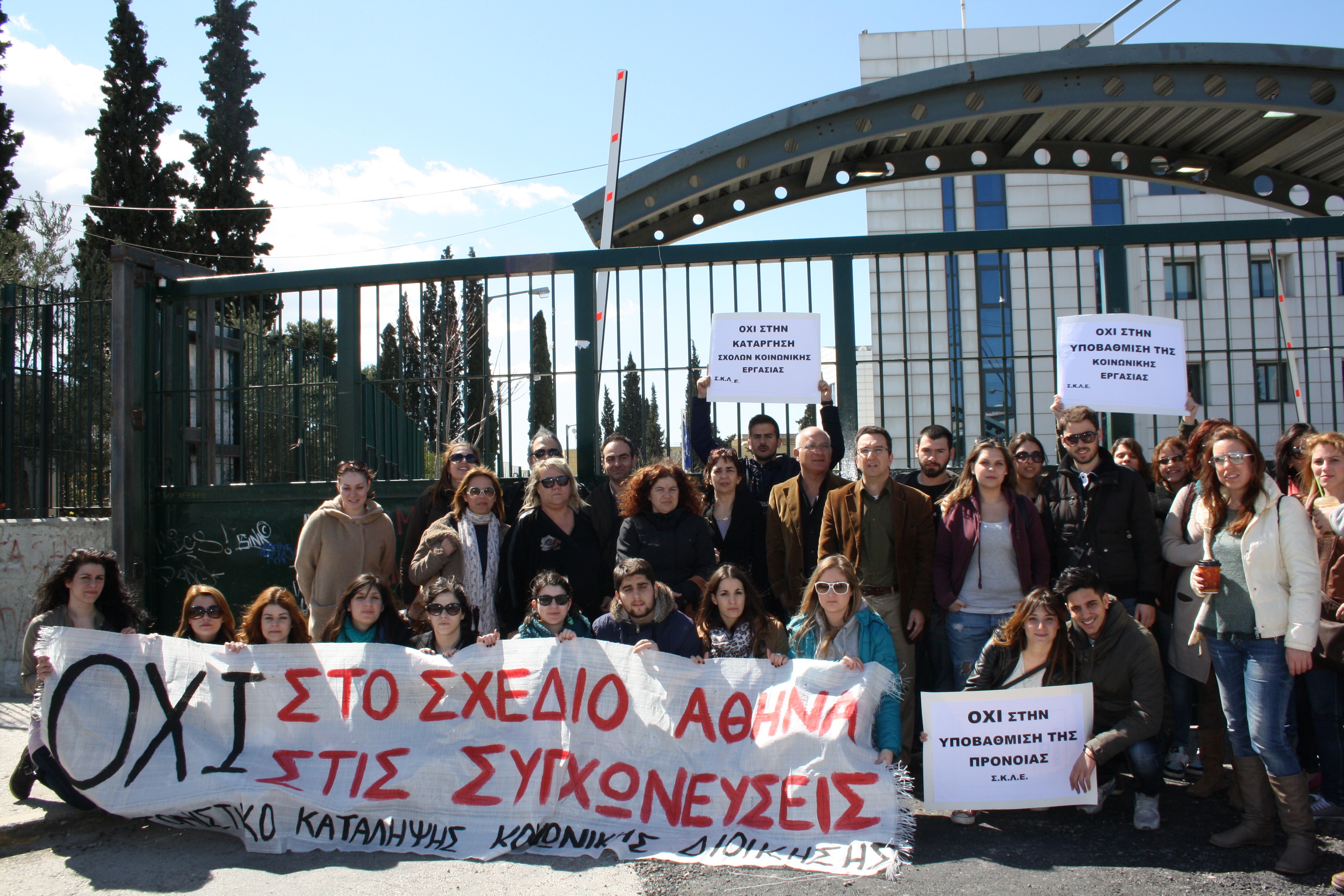 Οι καθηγητές και οι σπουδαστές επισημαίνουν ότι «στο Σχέδιο «Αθηνά» που στην τελική του μορφή δόθηκε στη δημοσιότητα την Τετάρτη 20 Μαρτίου περιλαμβάνονται ρυθμίσεις που καταργούν και υποβαθμίζουν την εκπαίδευση των Κοινωνικών Λειτουργών. Με τις ρυθμίσεις αυτές καταργούνται οι δύο από τις τέσσερις σχολές Κοινωνικής Εργασίας: το τμήμα Κοινωνικής Εργασίας του ΑΤΕΙ Πάτρας και η κατεύθυνση Κοινωνικής Εργασίας του Δημοκρίτειου Πανεπιστημίου στη Κομοτηνή. Με τον τρόπο αυτό κλιμακώνεται η πολιτική των οριζόντιων περικοπών και της λογιστικής αντίληψης που εφαρμόζεται στις υπηρεσίες υγείας και πρόνοιας με άμεση συνέπεια την αδυναμία του Κράτους Πρόνοιας να παίξει τον ιδιαίτερο ρόλο του σε μία περίοδο με έντονα τα χαρακτηριστικά της ανθρωπιστικής κρίσης.