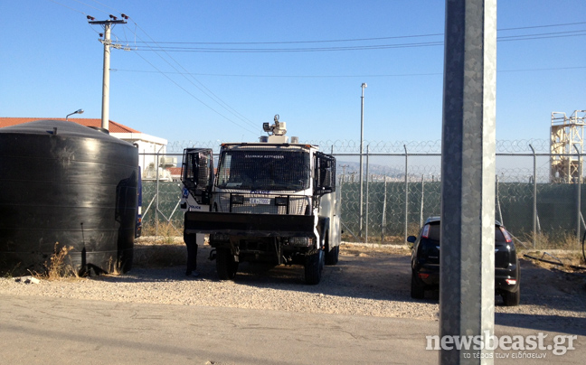 Σήμερα, έξω από το κέντρο κράτησης βρίσκονται αστυνομικοί, κλούβες των ΜΑΤ καθώς και ο «Αίαντας», το υδροφόρο όχημα που επιστρατεύει ΕΛ.ΑΣ. στις διαδηλώσεις.