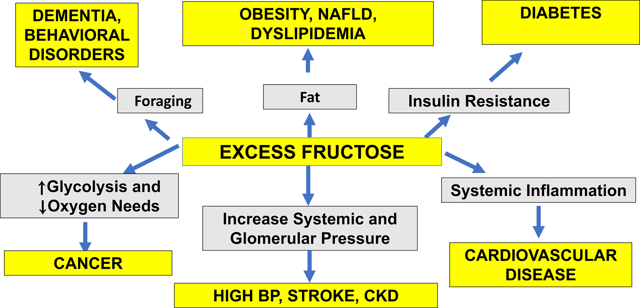 Το πρόβλημα ξεκινά όταν παίρνουμε περίσσιες ποσότητες φρουκτόζης από τη ζάχαρη, τα γλυκαντικά, τα σιρόπια και άλλα, τα οποία πολλές φορές συγκεντρώνονται σε μεγάλες ποσότητες στη διατροφή μας χωρίς να το καταλαβαίνουμε. Ο μεταβολισμός της φρουκτόζης στο σώμα προκαλεί μία πτώση της τριφωσφορικής αδενοσίνης (ATP), ενός στοιχείου που παρέχει ενέργεια για τις κυτταρικές διεργασίες του σώματος. Όταν η ATP είναι σε χαμηλά επίπεδα, δίνει σήμα στο σώμα πως χρειάζεται περισσότερα “καύσιμα”. Αυτό μας κάνει να πεινάμε και τρώμε περισσότερο.