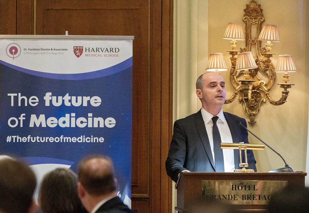 Η εκδήλωση που σημείωσε μεγάλη επιτυχία πραγματοποιήθηκε στο ξενοδοχείο «Μεγάλη Βρετανία», με την τιμητική παρουσία του Dr. Αjay K. Singh, Αντιπρύτανη της Ιατρικής Σχολής του Πανεπιστημίου Harvard για τη μεταπτυχιακή εκπαίδευση. Κατά την ομιλία του με τίτλο «Τhe Future of Medicine», ο Dr. Singh επικεντρώθηκε στο ρόλο της τεχνητής νοημοσύνης στα συστήματα υγείας, αναφέροντας χαρακτηριστικά πως στα νοσοκομεία του Harvard ήδη χρησιμοποιείται σε μεγάλο βαθμό στη διάγνωση απεικονιστικών εξετάσεων και βιοψιών. Παράλληλα, εξήρε το ρόλο των Ελλήνων επιστημόνων στην εξέλιξη της τεχνητής νοημοσύνης, τονίζοντας, παράλληλα, την ανάγκη μεγαλύτερων επενδύσεων στη χώρα μας για την ανάπτυξή της. Τέλος, αναφέρθηκε στην ιατρική ακριβείας και τις εξατομικευμένες, θεραπευτικές διεξόδους που δημιουργεί, ενώ επεσήμανε την ανάγκη ισότιμης πρόσβασης όλων των ασθενών σε αυτές παρά το υψηλό τους κόστος.