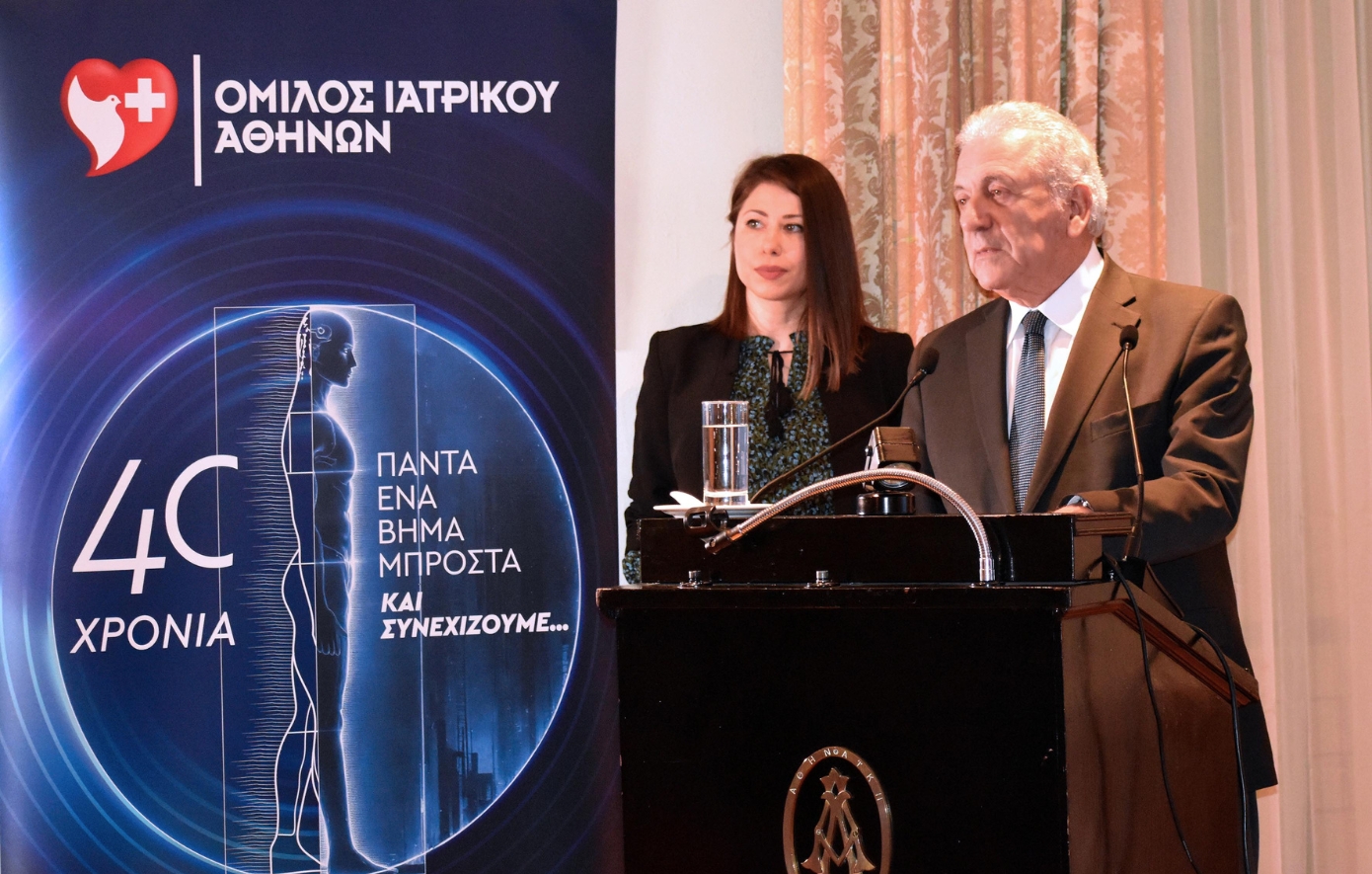 Ο κ. Δημήτρης Αβραμόπουλος, αναφέρθηκε στον ρόλο του Δρ. Γεώργιου Β. Αποστολόπουλου, Ιδρυτή και Προέδρου του Ομίλου Ιατρικού Αθηνών, ως πρωτοπόρου στην έννοια της υγειονομικής διπλωματίας στην Ελλάδα.