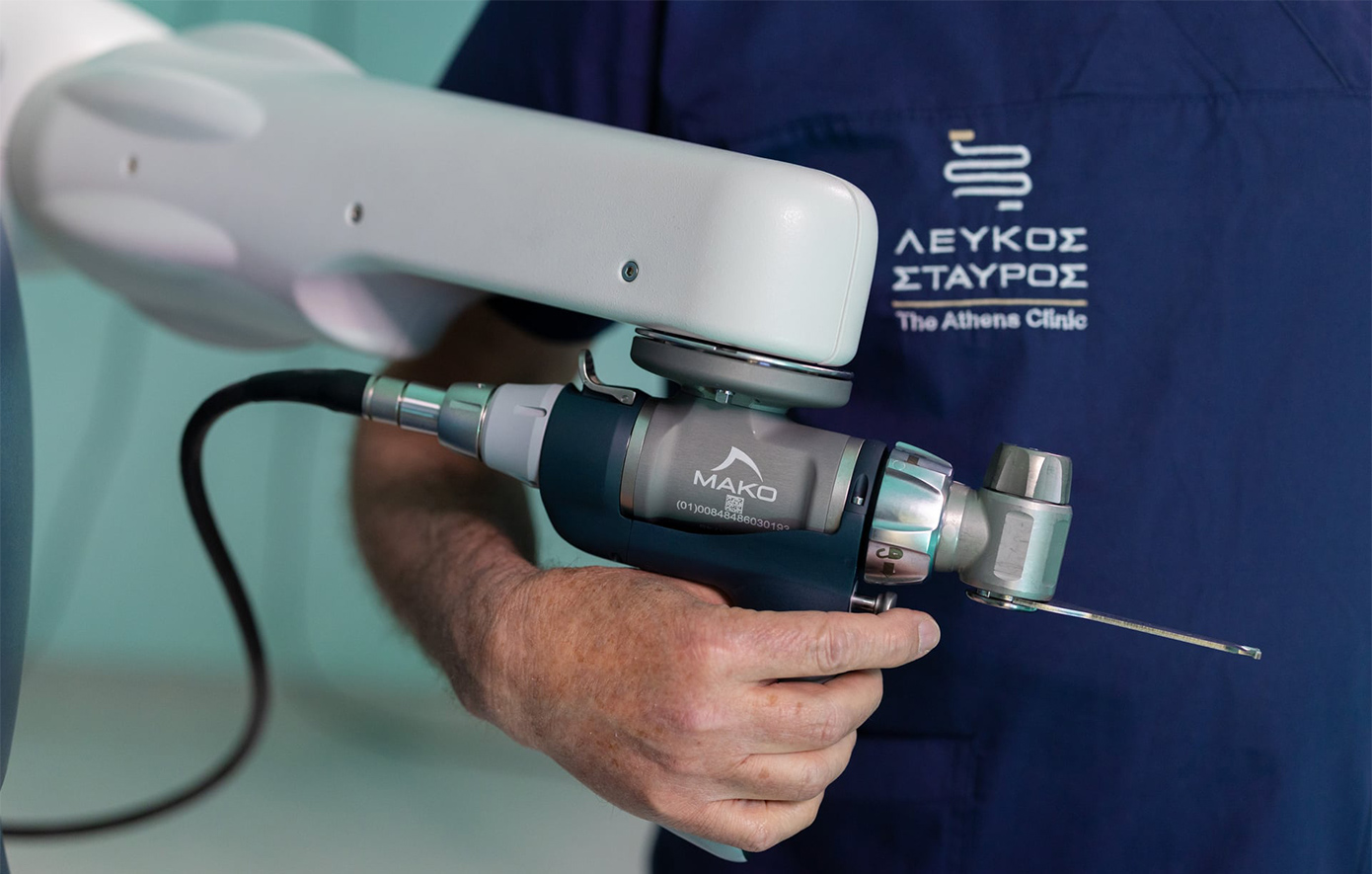 Η ραγδαία εξέλιξη της ιατρικής τεχνολογίας ανοίγει νέους ορίζοντες στην αποκατάσταση των φθαρμένων αρθρώσεων, με την εφαρμογή νέων πρωτοποριακών και ελάχιστα επεμβατικών μεθόδων, που στοχεύουν στην άριστη λειτουργικότητα, την ταχύτερη ανάρρωση και τη βελτίωση της ποιότητας ζωής των ασθενών. Ο Λευκός Σταυρός – The Athens Clinic, επιβεβαιώνοντας τη δέσμευσή του στην καινοτομία, ανακοινώνει ότι ενισχύει το Κέντρο Ρομποτικής Χειρουργικής, με την ένταξη του πρωτοποριακού ρομποτικού συστήματος αρθροπλαστικής Mako.