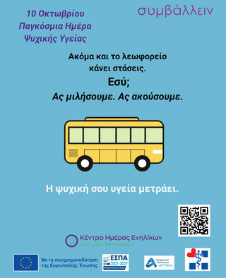 Η Αστική μη Κερδοσκοπική Εταιρεία «Συμβάλλειν», σε συνεργασία με τον Δήμο Αθηναίων και την Εντεταλμένη Δημοτική Σύμβουλο για Θέματα Προσβασιμότητας, κα Έλενα Μαντζαβίνου, σας προσκαλεί σε μια ιδιαίτερη εκδήλωση αφιερωμένη στην Παγκόσμια Ημέρα Ψυχικής Υγείας.