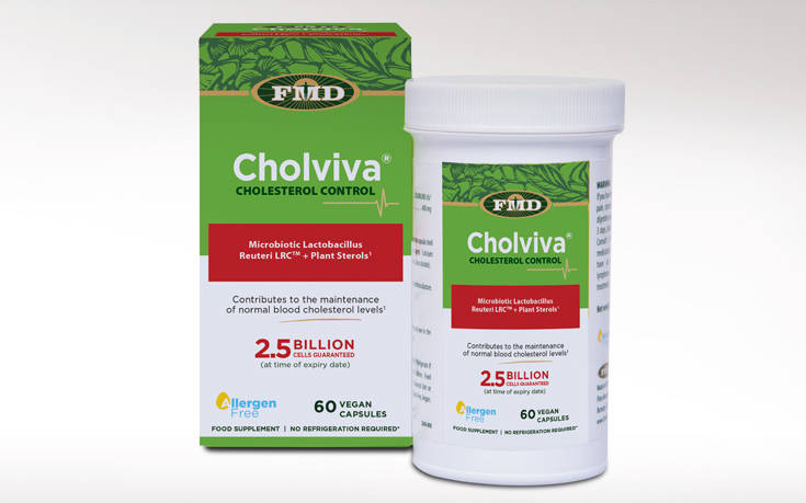 Το Cholviva ® είναι ένα νέο συμπλήρωμα που περιέχει το προβιοτικό στέλεχος LRC ™ σε συνδυασμό με φυτικές στερόλες και στοχεύει τα υγιή επίπεδα χοληστερόλης και βιταμίνης D και την πεπτική υγεία με μία κάψουλα.