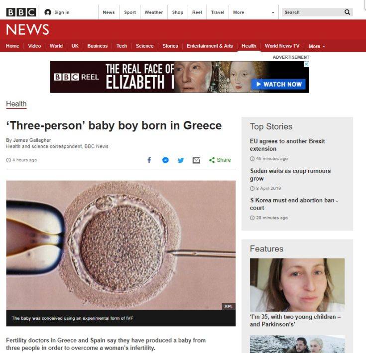 Γιατροί που ειδικεύονται σε θέματα γονιμότητας, σε Ελλάδα και Ισπανία, κατάφεραν να φέρουν στον κόσμο ένα παιδί, το οποίο γεννήθηκε με μια πρωτοποριακή τεχνική γνωστή ως «παιδί τριών γενετικών γονέων».