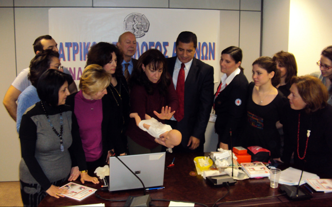 Ο Ελληνικός Ερυθρός Σταυρός ανακοινώνει την έναρξη συνεργασίας του Τομέα Νοσηλευτικής με τον Ιατρικό Σύλλογο Αθηνών προκειμένου να παρέχει δωρεάν μαθήματα Α’ Βοηθειών στους Γιατρούς και στο προσωπικό που προσφέρουν εθελοντικά τις υπηρεσίες τους στο Κοινωνικό Ιατρείο του Ιατρικού Συλλόγου στην οδό Σεβαστουπόλεως 113 στους Αμπελόκηπους.