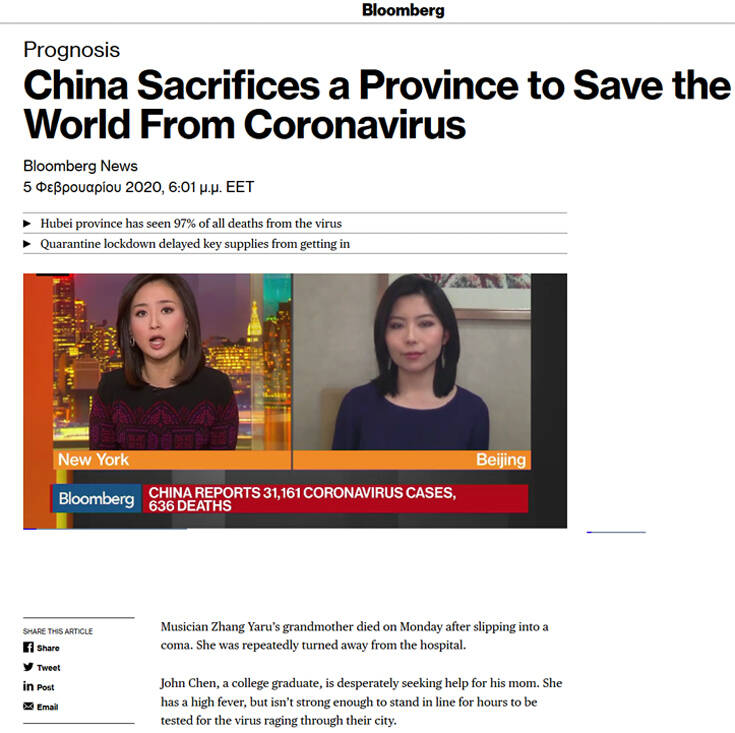 Σύμφωνα με το Bloomberg, η Κίνα φαίνεται πως είναι αποφασισμένη να θυσιάσει μία επαρχία στην προσπάθεια να σταματήσει την εξάπλωση του κοροναϊού στην υπόλοιπη χώρα, αλλά και στον κόσμο.