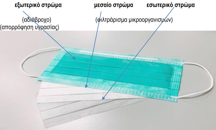 Περιγραφή των στρωμάτων της απλής χειρουργικής μάσκας