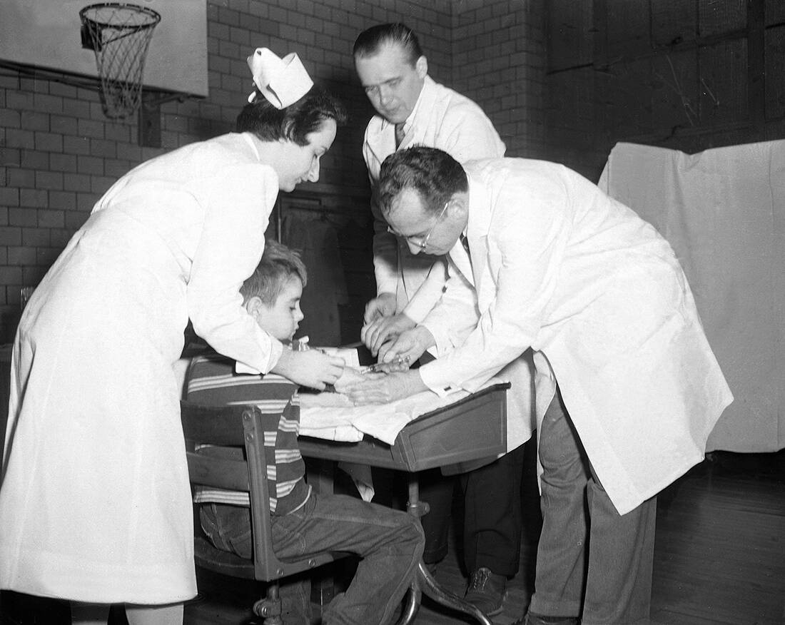Ωστόσο, το πρώτο ασφαλές και αποτελεσματικό εμβόλιο κατά της πολιομυελίτιδας ανακαλύφθηκε έναν αιώνα μετά την ανακάλυψη του ίδιου του ιού από τον Αμερικανό ιατρικό ερευνητή και ιολόγο Τζόνας Σολκ το 1955. Ο Σολκ αφιέρωσε τον εαυτό του στην έρευνα για την αντιμετώπιση της πολιομυελίτιδας για επτά ολόκληρα χρόνια, με επιτόπιες δοκιμές πειραματκού ελέγχου του εμβολίου οι οποίες συμπεριλάμβαναν 20.000 γιατρούς και δημόσιους λειτουργούς υγείας, 64.000 άτομα προσωπικού σχολείων και 220.000 εθελοντές, ενώ στη δοκιμή συμμετείχαν περισσότερα από 1.800.000 παιδιά. Η επίσημη ανακοίνωση των θετικών αποτελεσμάτων του εμβολίου πραγματοποιήθηκε τον Απρίλιο του 1955 και ο ίδιος ο Σολκ αντιμετωπίστηκε σαν «θαυματοποιός».