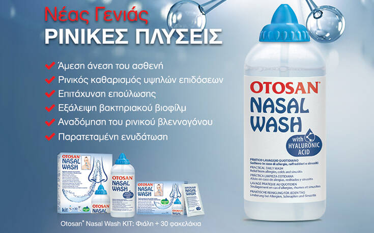 Απο τα ερευνητικά εργαστήρια του OTOSAN προέκυψε το OTOSAN Nasal Wash με φυσικό διάλυμα για καθημερινές ρινικές χρήσεις. Το OTOSAN Nasal Wash καθαρίζει τη ρινική κοιλότητα συμβάλλοντας στην απομάκρυνση της βλέννας και άλλων παθογόνων μικροσωματιδίων αποκαθιστώντας τα επίπεδα υγρασίας και ελαστικότητας στο ρινικό βλεννογόνο που αποτελεί φυσικό φραγμό άμυνας του οργανισμού.
