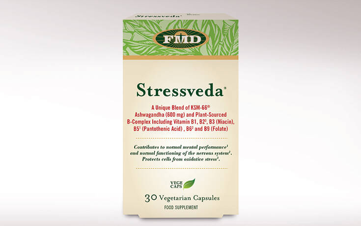 Το Stressveda είναι μια φόρμουλα που συνδυάζει τις βιταμίνες Β1, Β2, Β3, Β5, Β6, Β9 (φυλλικό οξύ) κι ένα τιτλοδοτημένο εκχύλισμα ρίζας Ashwagandha. Οι βιταμίνες Β συμβάλλουν στην υγιή αντιμετώπιση του στρες και υποστηρίζουν τη φυσιολογική ψυχική δραστηριότητα και την υγεία του νευρικού συστήματος. Το Ashwagandha είναι ένα προσαρμογόνο (adaptogen) βότανο της Αγιουρβεδικής παραδοσιακής ιατρικής. Τα Προσαρμογόνα βότανα βοηθούν στην αύξηση της ικανότητας του οργανισμού να αντιστέκεται σε φυσικούς, χημικούς ή βιολογικούς παράγοντες, έχουν ομαλοποιητική επίδραση στην αντιμετώπιση του στρες και είναι γενικά ασφαλή και χωρίς παρενέργειες σε κανονικές δόσεις.