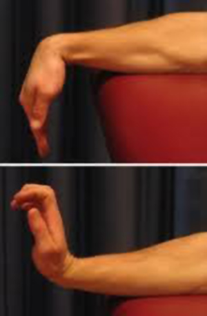 Ψηλαφούμε με τα δάκτυλά μας το οστούν της κερκίδος πάνω από τον καρπό (η κερκίδα είναι το οστούν που βρίσκεται στην ευθεία του αντίχειρα-το άλλο οστούν, η ωλένη βρίσκεται στην ευθεία του μικρού δακτύλου).