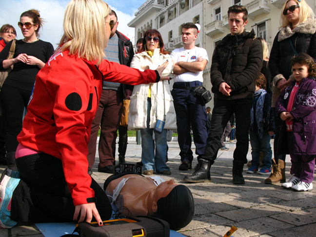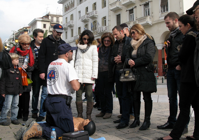 Μεγάλη ήταν η συμμετοχή και το ενδιαφέρον των Θεσσαλονικέων που βρέθηκαν το Σάββατο, 8 Φεβρουαρίου στην Πλατεία Αριστοτέλους, για να παρακολουθήσουν την ανοιχτή εκπαίδευση στην Καρδιοπνευμονική Αναζωογόνηση (ΚΑΡ.Π.Α.) που διοργάνωσε η Ελληνική Ομάδα Διάσωσης, με αφορμή τον εορτασμό του πανευρωπαϊκού αριθμού έκτακτης ανάγκης 112, σε συνεργασία με την Αντιπροσωπεία της Ευρωπαϊκής Επιτροπής στην Ελλάδα και τη συμβολή του 112 Foundation.