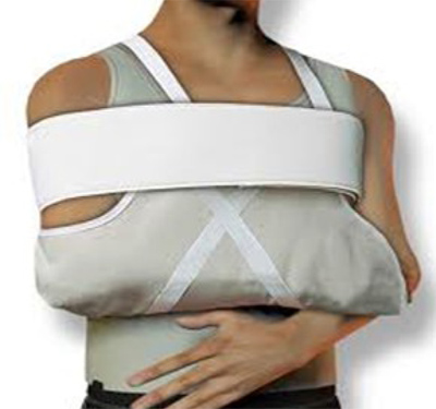 Όταν θεωρήσουμε με τον έλεγχο που κάνουμε ότι είναι κάταγμα, χρειάζεται ακινητοποίηση. Κρεμάμε το χέρι σ΄ ένα μαντήλι (προσέχουμε ο αγκώνας να βρίσκεται χαμηλότερα από το χέρι – δηλαδή το χέρι να βλέπει τον απέναντι μαστό) και σταθεροποιούμε το κρεμασμένο χέρι με μια ζώνη γύρω από τον θώρακα.