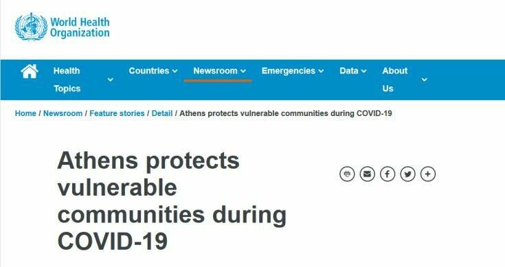 Με ένα εκτενές άρθρο στην ιστοσελίδα του, ο ΠΟΥ, κάνει ένα ιδιαίτερα θετικό αφιέρωμα στις σημαντικές προσπάθειες του Δήμου Αθηναίων για τον περιορισμό της διασποράς της πανδημίας του κορονοϊού στην πρωτεύουσα και την προστασία των ευάλωτων κοινωνικών ομάδων του πληθυσμού.