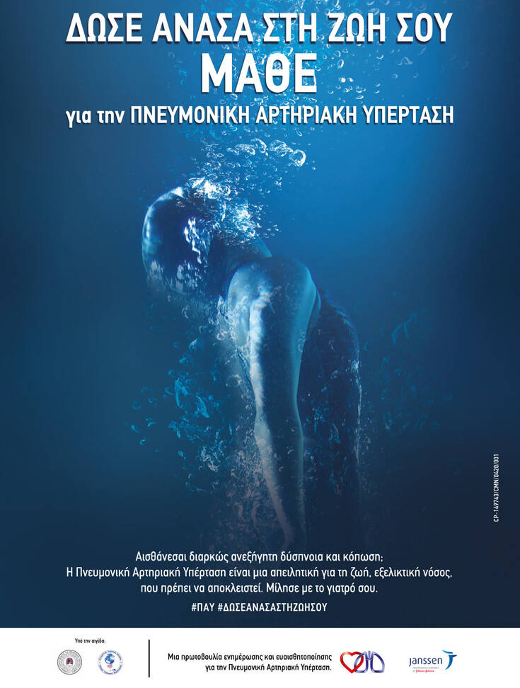 Η Janssen Ελλάδος, φαρμακευτική εταιρεία του ομίλου της Johnson & Johnson, αφοσιωμένη στην ενημέρωση για τη νόσο της Πνευμονικής Αρτηριακής Υπέρτασης (ΠΑΥ) δημιούργησε μια καμπάνια ενημέρωσης υπό την αιγίδα της Ελληνικής Εταιρείας Μελέτης της Πνευμονικής Υπέρτασης (ΕΕΜΠΥ) και του Πανελλήνιου Συλλόγου Ασθενών με Πνευμονική Υπέρταση.