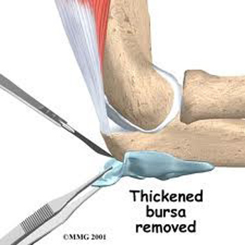 Ο χώρος αυτός όταν χτυπήσει ο αγκώνας ή από χρόνια τριβή, π.χ. σε κάποιον που γράφει επί μακρόν ακουμπώντας τον αγκώνα στο γραφείο του, γεμίζει από αίμα ή υγρό και αιφνιδίως εμφανίζεται στον αγκώνα ένα «σακκουλάκι» που προβάλλει και κρέμεται.
