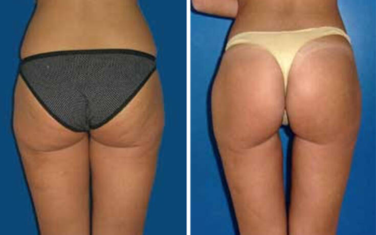 Στην οπίσθια επιφάνεια μπορούμε να λεπτύνουμε την μέση σαν “κλεψύδρα” και να τονίσουμε τους γλουτούς με το λίπος που θα αφαιρέσουμε. Στην περίπτωση αυτή μιλάμε για το bbl το λεγόμενο brazilian butt lift.