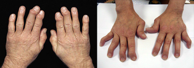 Οι μικρές αυτές διογκώσεις εμφανίζονται μόνο στις αρθρώσεις των δακτύλων και δεν αφορούν την άρθρωση δακτύλων-μετακαρπίων. Οι πρησμένες αρθρώσεις μετακαρπίων-δακτύλων οφείλονται σε ρευματοειδή αρθρίτιδα (R.A.) που προκαλεί μεγάλες αλλοιώσεις και παραμορφώσεις και σε άλλες αρθρώσεις, μεγάλες (γόνατα, αγκώνες, καρπούς).