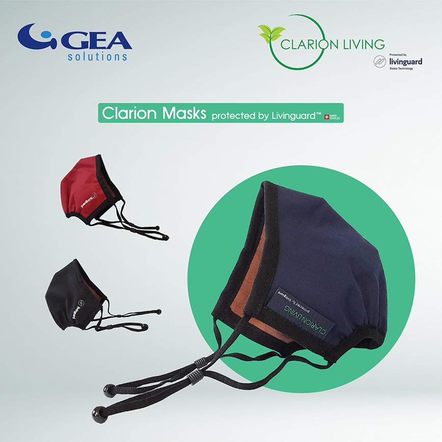 Εφαρμογή και άνετη αναπνοή: Στα πλεονεκτήματα επίσης πρέπει να προστεθεί και η εξαιρετική εφαρμογή λόγω των ρυθμιζόμενων βρόγχων αυτιού και η γέφυρα (κλιπ) μύτης που βελτιώνουν την αναπνοή με αποτέλεσμα να φοράτε ανενόχλητα τη μάσκα πολλές ώρες, χωρίς να πρέπει να τη μετακινήσετε ή να την αφαιρέσετε. Το απαλό και άοσμο ύφασμα και η σχεδίαση, καθιστούν την Clarion Mask την καλύτερη επιλογή. Διατίθεται σε τρία χρώματα (γκρι, μπορντό και μπλε) στο ηλεκτρονικό κατάστημα της GEA Solutions, στη διεύθυνση: geasolutions.gr