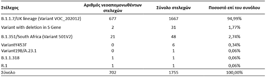 Από τον έλεγχο των 944 δειγμάτων, βρέθηκαν 702 στελέχη με μεταλλάξεις ειδικού ενδιαφέροντος (variants of concern):