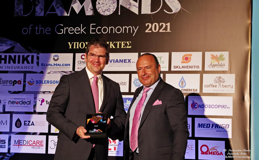 Σημαντική διάκριση απέσπασε για άλλη μια χρονιά η φαρμακοβιομηχανία DEMO για την επιχειρηματική πορεία της και το υγιές μοντέλο ανάπτυξής της, στην Ετήσια Συνάντηση Επιχειρηματικής Αριστείας, “Diamonds of the Greek Economy 2021”, που πραγματοποιήθηκε την Τετάρτη, 7 Ιουλίου 2021 στο Κτήμα «Γαλάζιο» στο Ελληνικό. Η εκδήλωση, την οποία παρουσίασαν οι δημοσιογράφοι του Open, Ευλαμπία Ρέβη και του CNN Greece, Χρήστος Θ. Παναγόπουλος μεταδόθηκε μέσω live streaming στα social media και στο newtimes.gr.